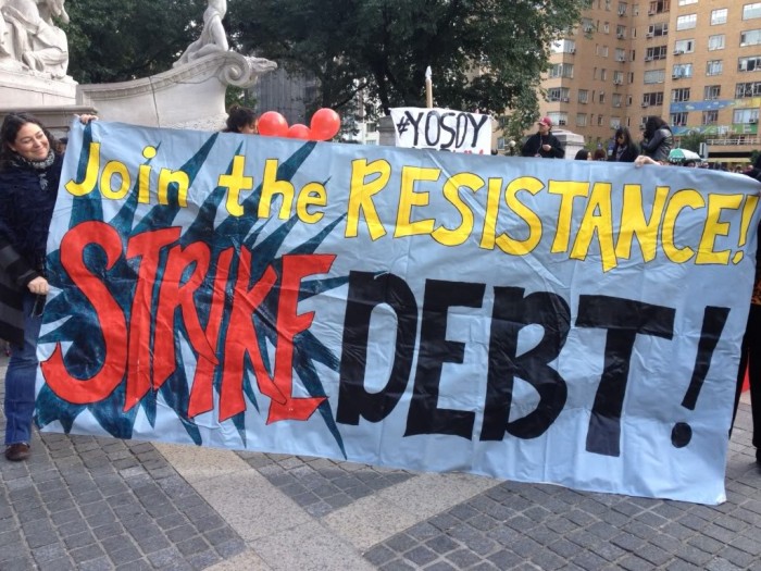 أخيرا، لا يمكننا االسكوت عن الديون الخاصّة للطلبة في نظام تعليمي خاص. فديون الطلبة في الولايات المتّحدة الأمريكيّة ستصل مستقبلا إلى 1.200 مليار دولار. إنّ هذا المبلغ أرفع بكثير من إجمالي الديون العمومية الخارجيّة التي راكمتها إفريقيا وامريكا اللاتينيّة. فالكثير من الطلبة يجدون أنفسهم بعد نهاية دراستهم ودون عمل في كمّاشة ديْن خانقة بمعدّل 35000 دولار سنة 2015. وهي ديون قد تصل أعباء سدادها أحيانا إلى سنّ التقاعد. إنّ ائتلاف اضراب الديون (Strike Debt) يجمع الطلبة المستدينين ويدعمهم في كفاحهم ضد البنوك.