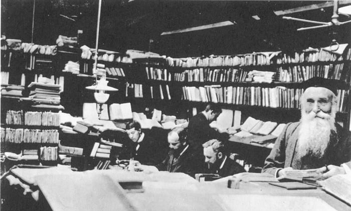 James Murray and his staff compiling the first edition of the New English Dictionary, published in 1928.