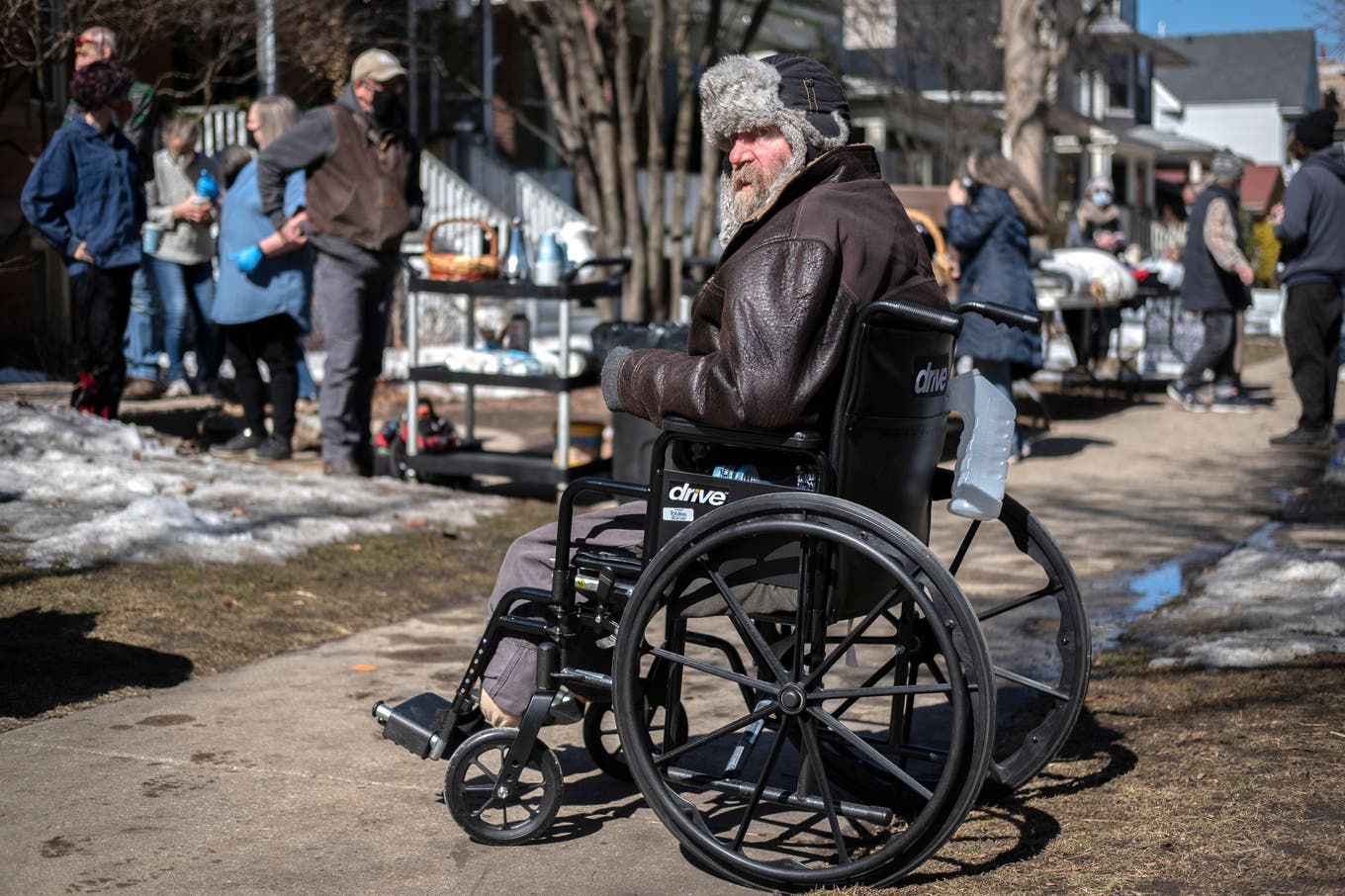 Zur Essensabgabe vor der Pilgrim-Lutheran-Kirche in Chicago kommt auch ein Obdachloser,