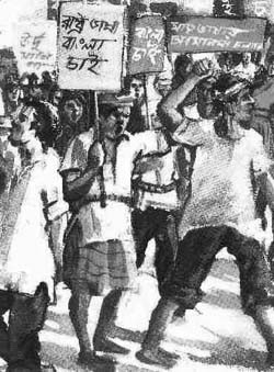 On February 21st, 1952, tens of thousands of students, intellectuals and working people gathered in Dhaka, then capital of East Pakistan and now of Bangladesh, against the imposition of Urdu as Pakistan‘s sole national language on Bengalis. As the students tried to march, the police fired and killed four that day and at least seven more in the next two days. The movement then turned into a popular uprising which finally ended with Bangladesh breaking free of Pakistan in 1971 after one of the most vicious ethnic cleansings of the Twentieth Century, supported by the Nixon administration. Since then, the people of Bangladesh observe Ekushey, or February 21st, as Martyrs’ Day, pledging to keep alive the rich heritage of Bangla language (Ekush is Bangla for 21, and Ekushey means 21st.). In 2000, UNESCO declared February 21st to be International Mother Language Day as a tribute to the movement.